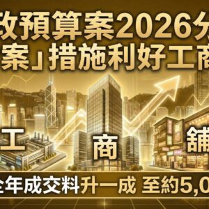 政府今日公佈新一份《財政預算案》公布,提出多項針對工商舖市場及經濟發展的政策措施,為市場注入新動能。隨着經濟全面復甦與政策支持齊推,預期2026年全年工商舖成交宗數可達約5,000宗,按年升約一成,並因為眾多利好因素湧現,輕微調升全年成交金額預測,由原來的5%以下,調高至約6%,料可達730億元。