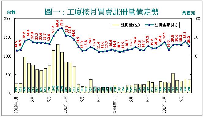 根據美聯工商舖資料研究部綜合土地註冊處數據顯示,7月份市場錄得360宗工廈買賣登記,按月下跌6%,表現稍遜於大市。因上月僅錄1宗逾億元註冊成交,該宗成交為價值約2.07億元的黃竹坑長德工業大廈多層樓面連車位登記,故此拖累月內註冊金額僅約26.23億元,按月銳減32%。