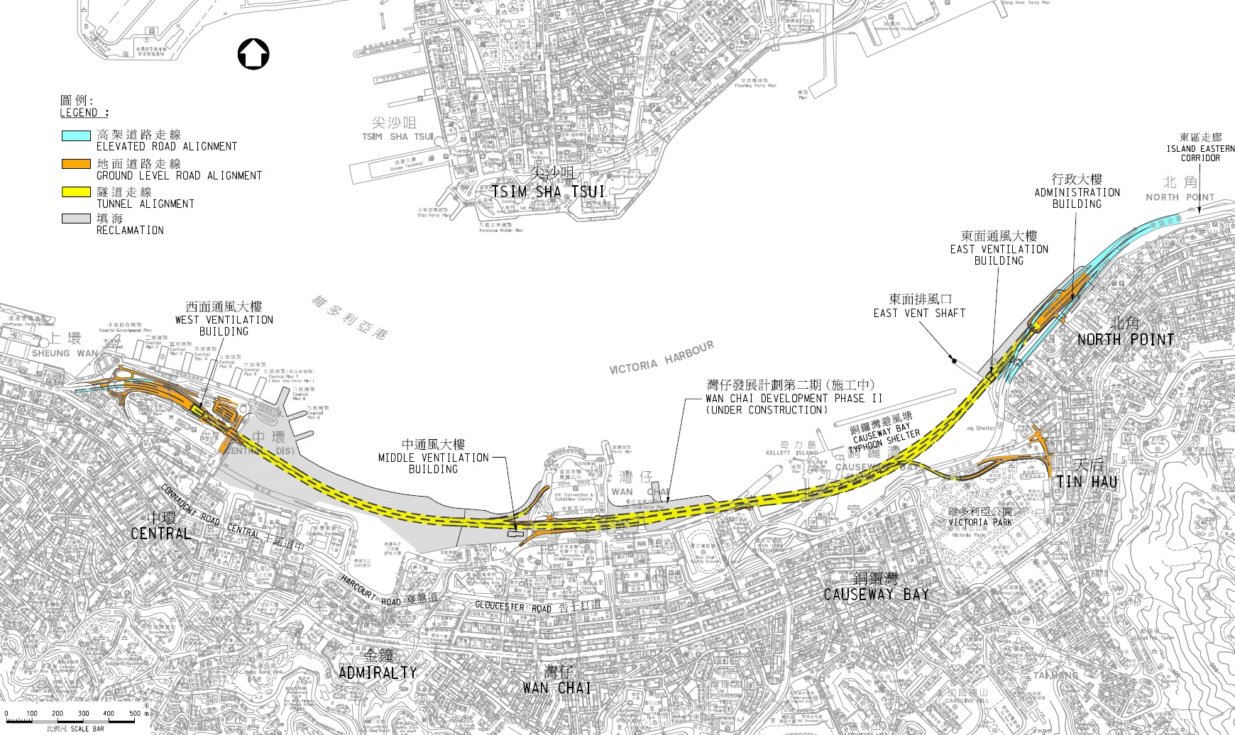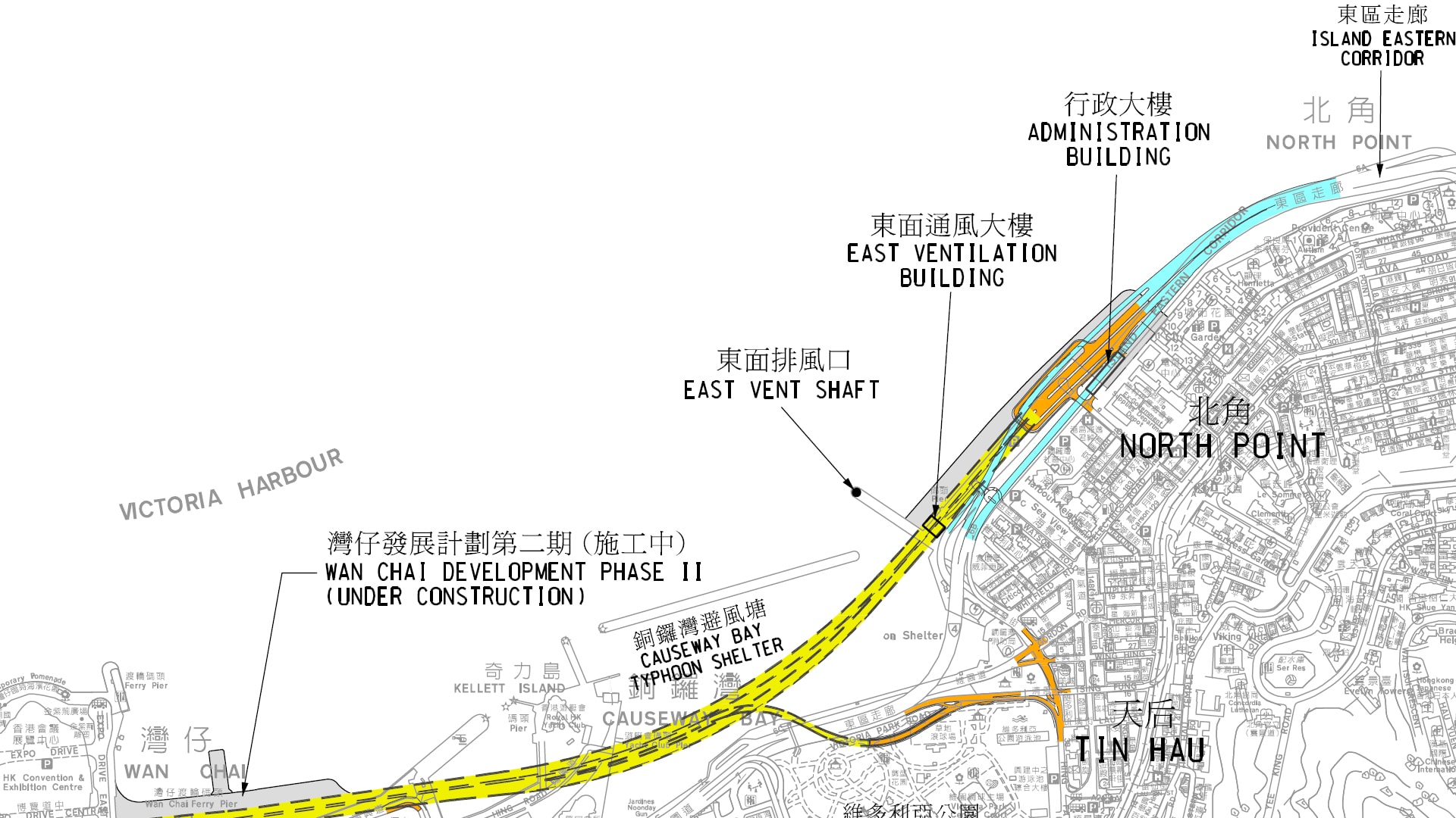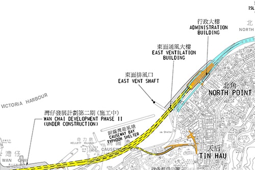 為紓緩告士打道及干諾道中等道路交通擠塞情況,政府通過興建中環灣仔繞道,由北角、天后一帶,穿過灣仔、中環填海區,宜接連接到中上環一帶,縮短與核心商業區的距離,項目全長4.5公里,採雙程三線主幹道路設計,包括一條長3.7公里的隧道。項目已於2009年12月動工,估計耗資約360億元,並預計最快將於2018年底落成。路政署預計,該繞道通車後,預計由北角來往中環,只需約5分鐘,遠較現時快捷。
